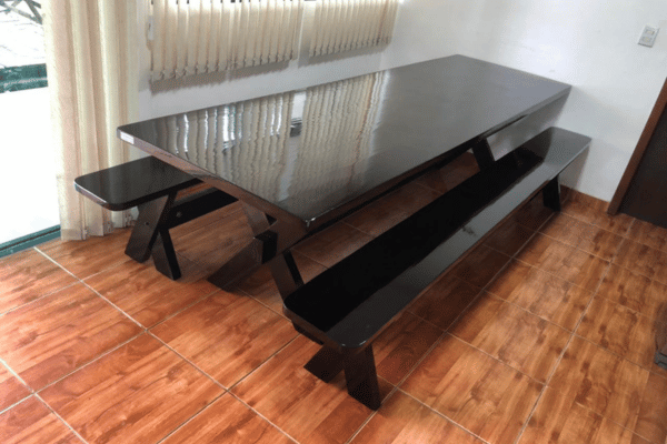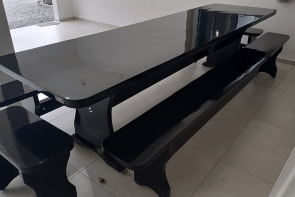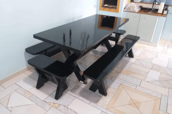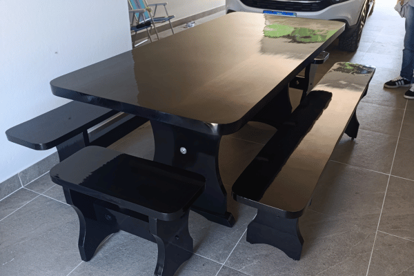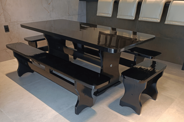 Disponível em diversas cores, com acabamento brilhante ou acetinado. Oferecemos opções com verniz automotivo ou verniz P.U. acetinado, além de modelos com bordas rústicas ou bordas retas.